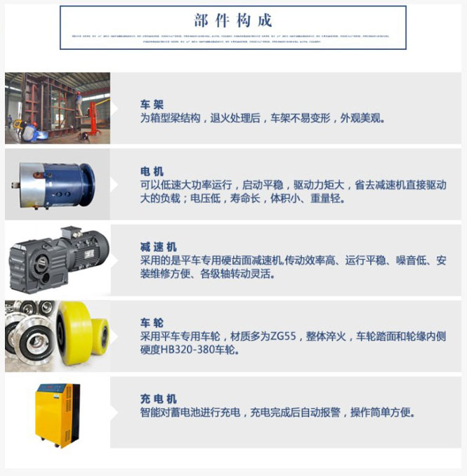 RGV轨道式电动平车顾名思义驱动行走是通过电动来实现的,作为电动搬运车的驱动装置是蓄电池为动力带动直流电机,以驱动轮子转动来实现前进、后退、停止、转弯的。